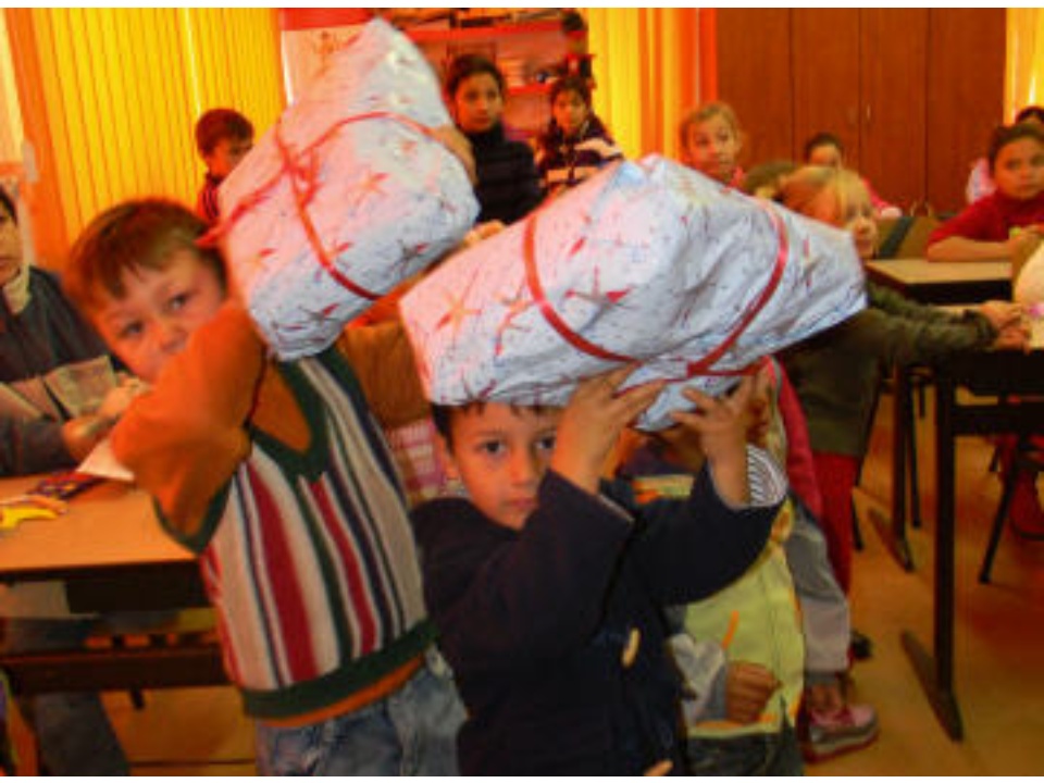 Süssigkeiten, Spielsachen, warme Kleider, Farbstifte, Schulhefte…