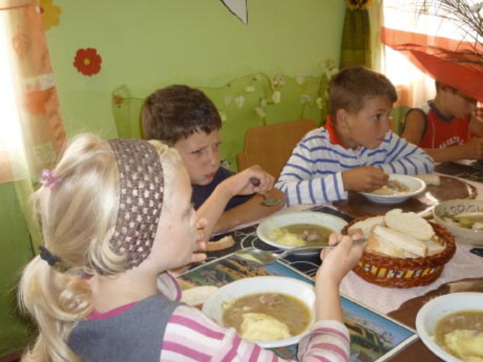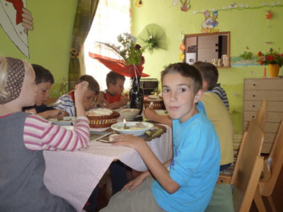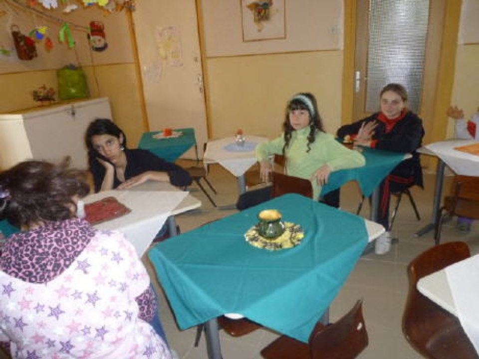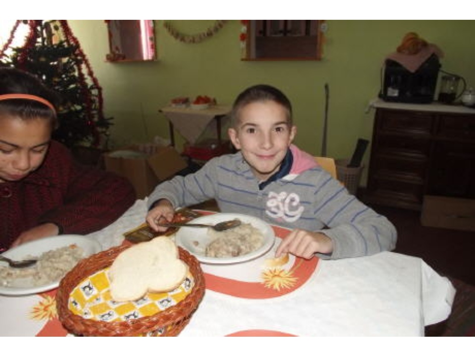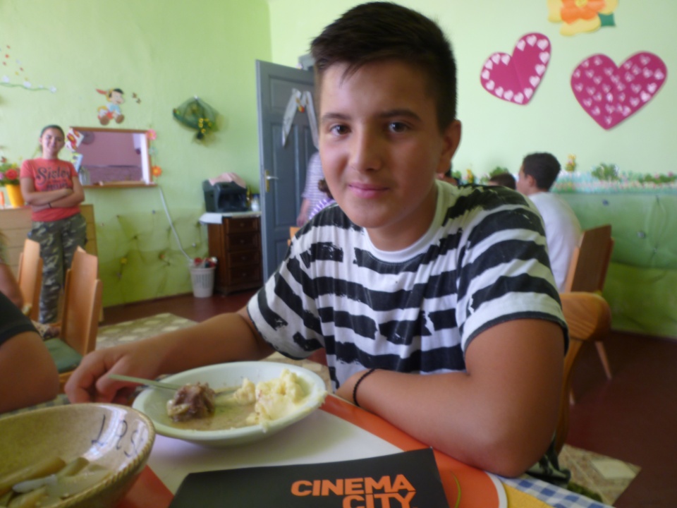 In der Kindertagesstätte im Dorf Buzias werden 40 - 50 Kinder, davon viele Rromi (Romas), nach der Schule betreut. Kinder aus bedürftigen Familien finden Geborgenheit und Betreuung: warme Mahlzeiten, Aufgabenhilfe, Zeichnen, Basteln, Sport und Musik. Die Kinder lernen Grund-Hygiene, da sie früher auf der Strasse oder Müllhalden lebten, wo sie nach Nahrung suchten. Viele Kinder werden alleine oder bei einer Oma zurückgelassen und die Eltern verreisen nach West-Europa.